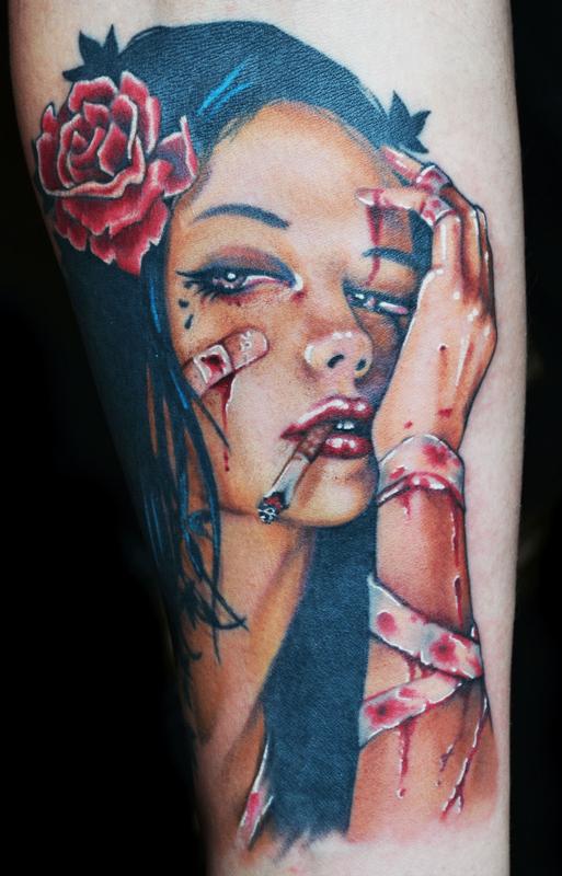 the Map Tattoo : Tattoos : Pin Up : Viveros Pinup Girl Color Tattoo